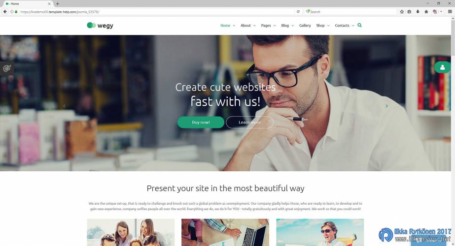 Sivut piti saada nopeasti pystyyn, joten uusi sivupohja piti hommata pikaisesti. Joka on Googlella sivupohjia hakenut, niin on varmasti törmännyt Templatemonsteriin. Siellä on kaikenlaisia sivupohjia kaikenlaisiin julkaisujärjestelmiin suuret määrät. Jo aiemmin olin harkinnut Wegy-nimisen pohjan ostamista ja nyt oli alennusmyynnit menossa. Kyselin vielä chatista, onko pohja K2-lisäosan kanssa yhteensopiva. Vastaus oli, että kyllä. Templatemonsterin chat on avoinna 24/7, eli apua kysymyksiin on aina tarjolla. Ja kun jotain jostain sivupohjasta kysyy, sähköpostiin tulee saman tien alennuskoodi. Näin ollen mistään pohjasta ei tarvitse maksaa ikinä normaalihintaa, jos vaan kysyy jotain haluamastaan tuotteesta.