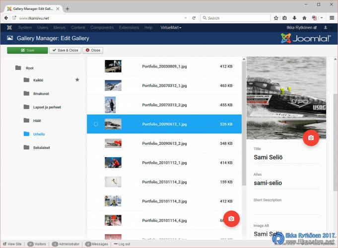 Wegyn piti olla K2-yhteensopiva, mutta eipä se sitten ollutkaan. Yhteensopivuusongelmien takia mietin jo, että pitääkö tässä alkaa uutta pohjaa kuitenkin etsiä. Olin kuitenkin jo sen verran pitkällä Wegyn kanssa, etten halunnut enää venyttää sivujen uudistamista vaan tyydyin käyttämään Joomlan vakioartikkeleita. K2:n käyttämisen tärkein syy on, että saan erittäin miellyttävät URL:t, eli sivujen osoitteet. Koska vanha sisältä oli tehty K2:lla, en saisi enää samoja osoitteita käyttöön. Esimerkiksi Fuji X-Pro2:n blogitekstin osoite muuttui muodosta: