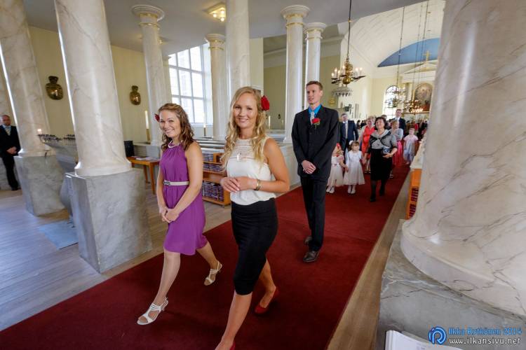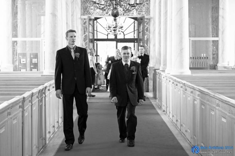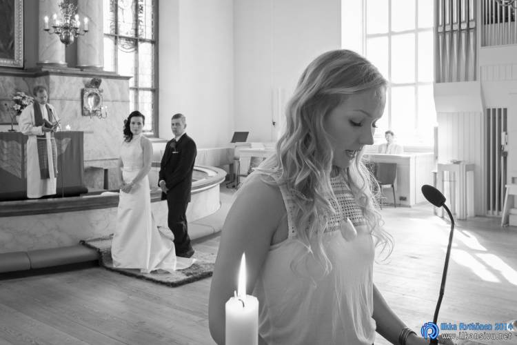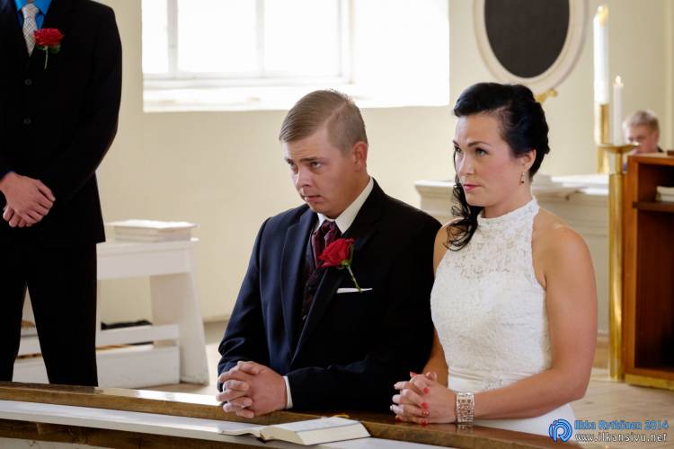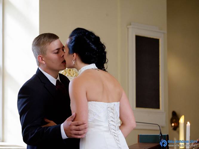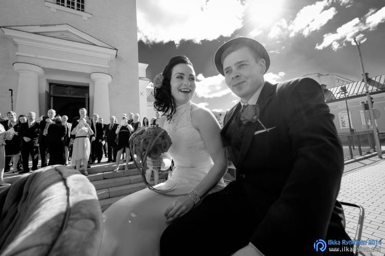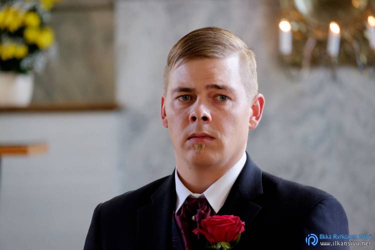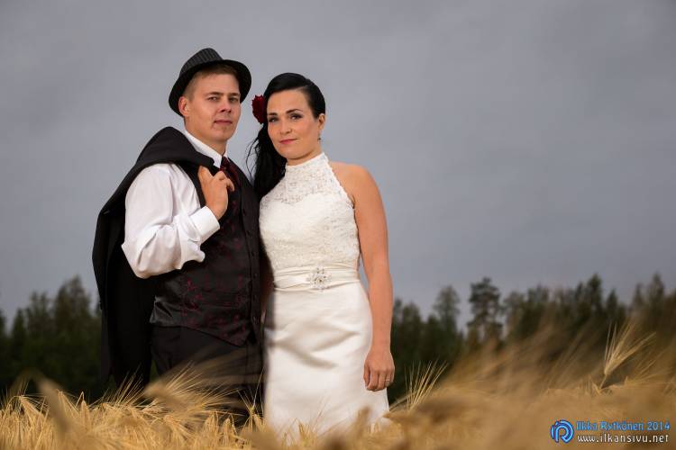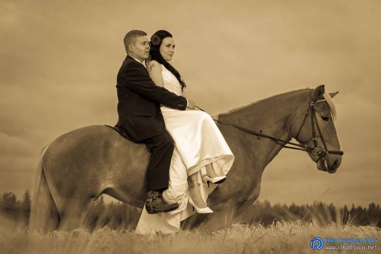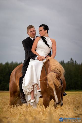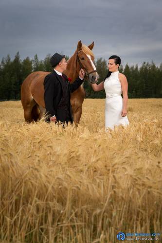 We had portrait photo session earlier in the week before the wedding ceremony. It started to rain just before shooting so we started photographing in a barn. Rain wasn’t any more so hard so we went to a wet barley field. Flashes needed to protect from the rain but camera and lenses were weather sealed so I could shoot pretty free. Horse was part of the photography.