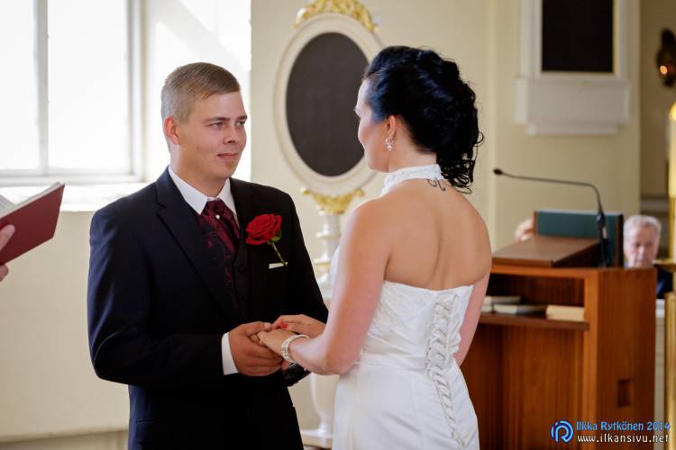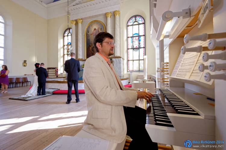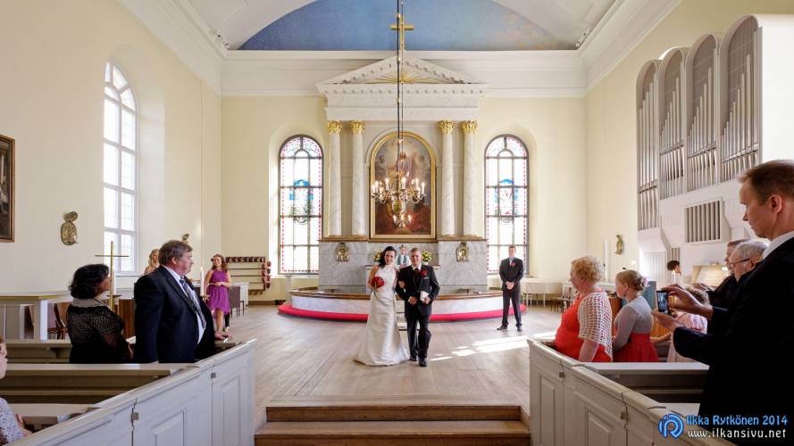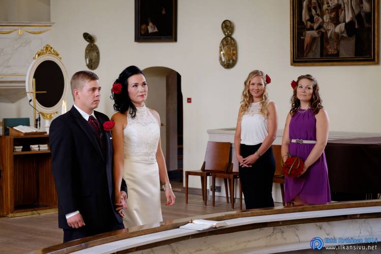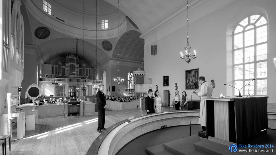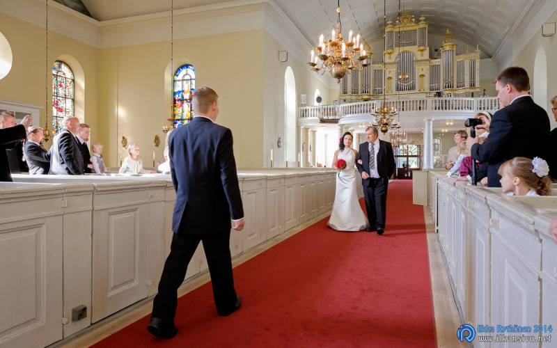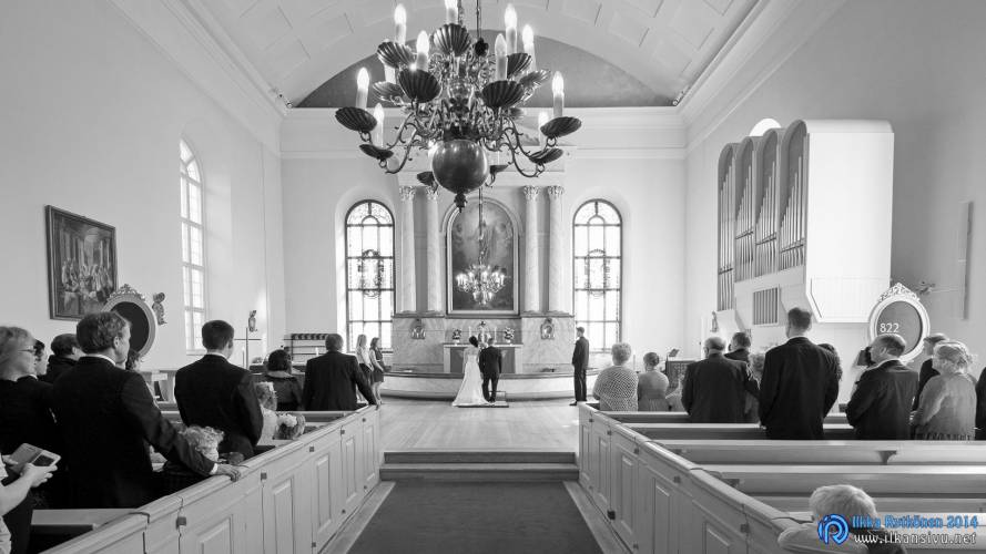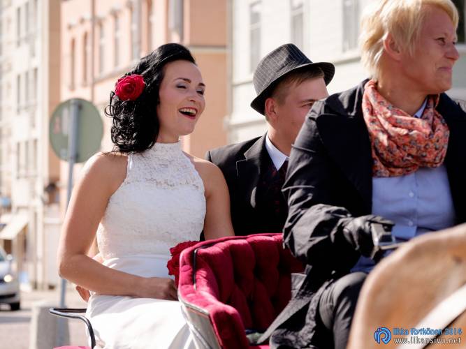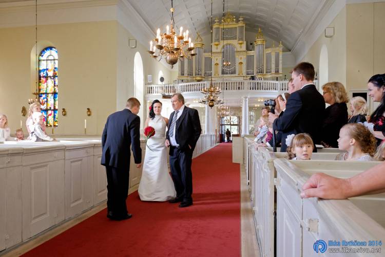 We had portrait photo session earlier in the week before the wedding ceremony. It started to rain just before shooting so we started photographing in a barn. Rain wasn’t any more so hard so we went to a wet barley field. Flashes needed to protect from the rain but camera and lenses were weather sealed so I could shoot pretty free. Horse was part of the photography.