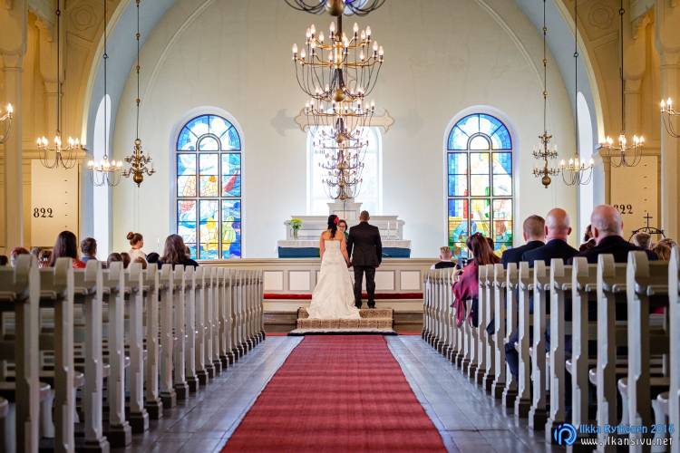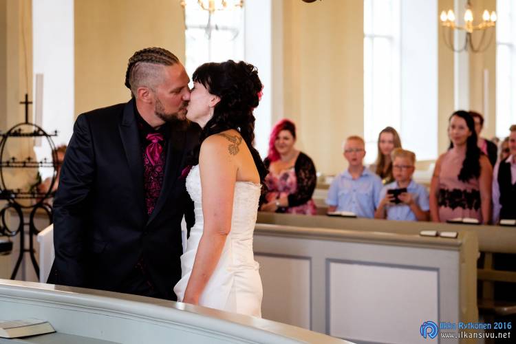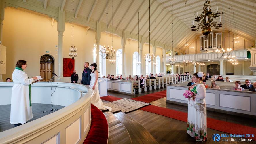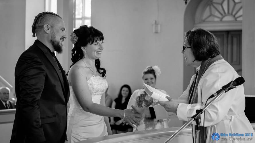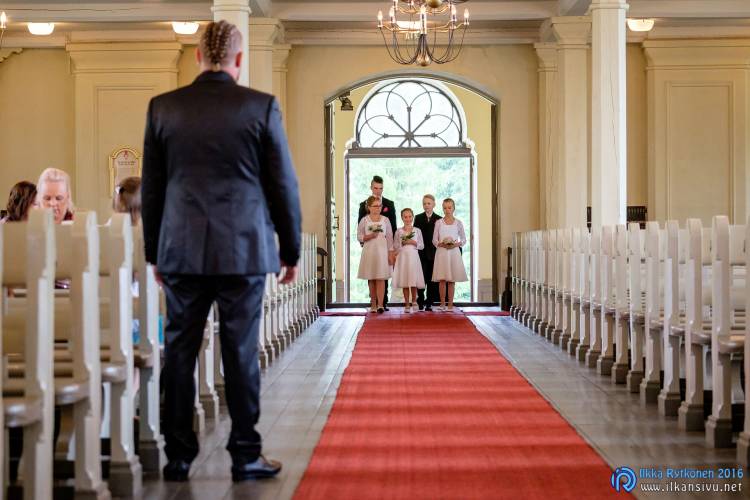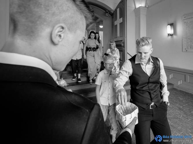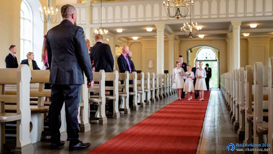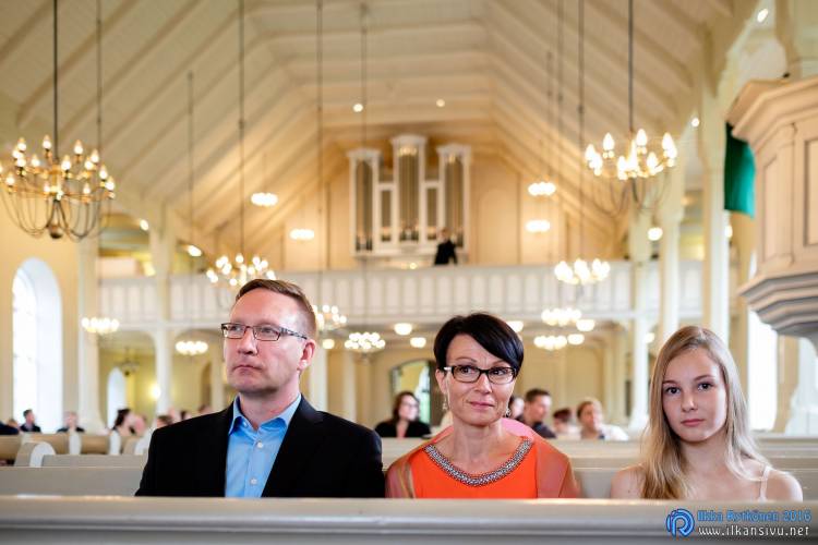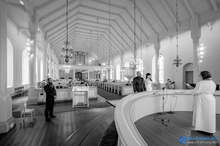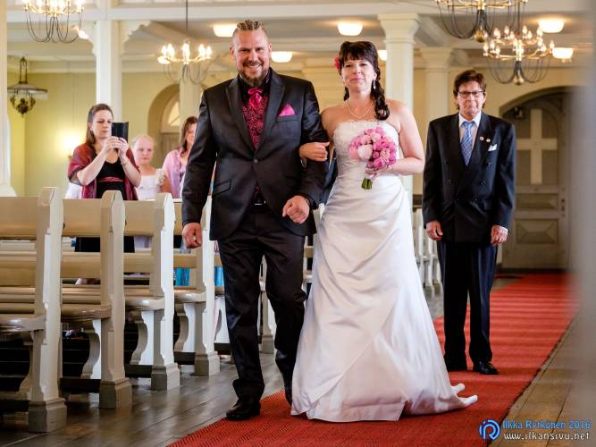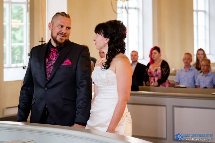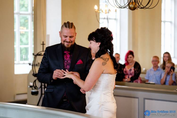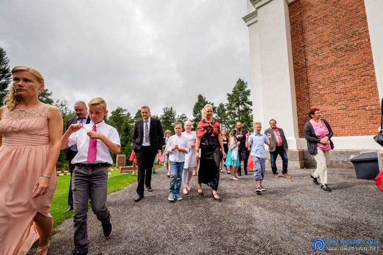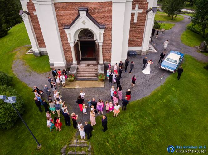 Wedding day in July so weather is to be expected nice and warm. But when Johanna and Jani were aimed to get married it wasn’t so warm and it was rainy also. Luckily rain showers were gone just before wedding ceremony which was held in Lumijoki church. Church is very big and beautiful place. It was my first attempt to try a drone as part of wedding photography.