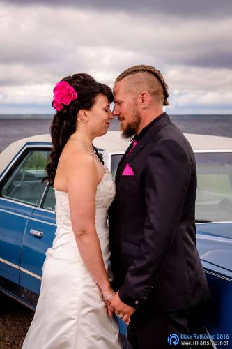 After wedding ceremony we drove to Varjakka next to sea where we took portraits. Wind was very hard that made photography more challenging. Imperial LeBaron was part of the few portrait shot. Varjakka seem to be famous place for wedding shooters. When we’re finished next couple with photographer arrived there.