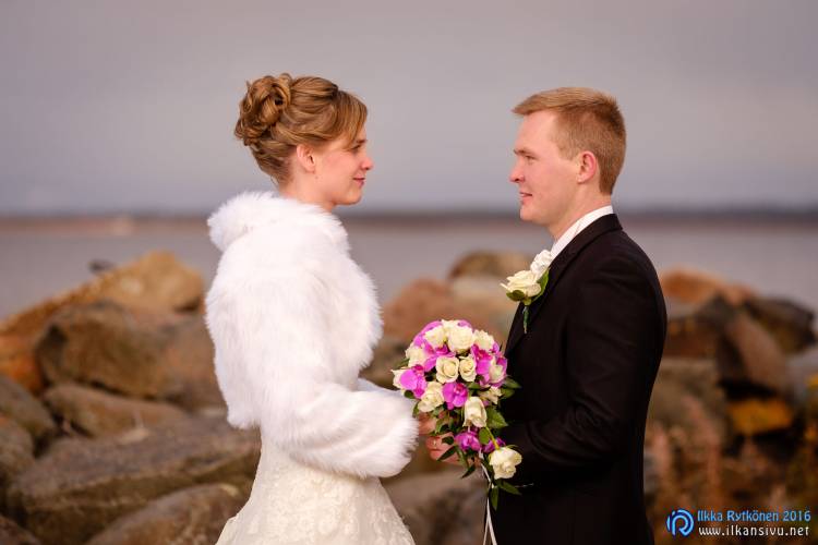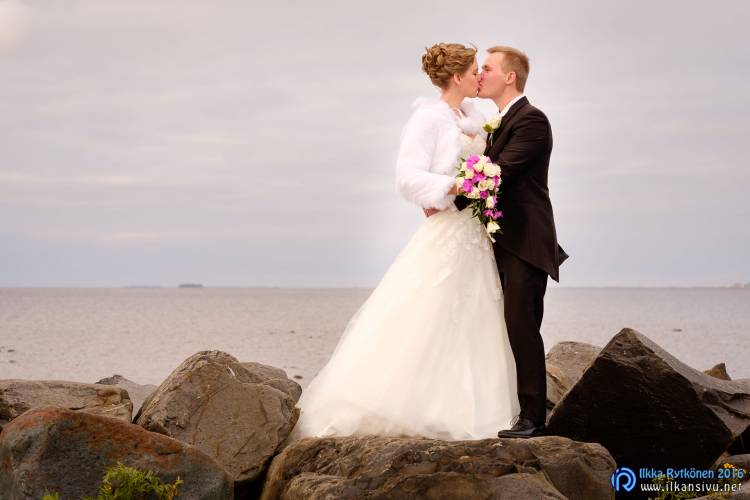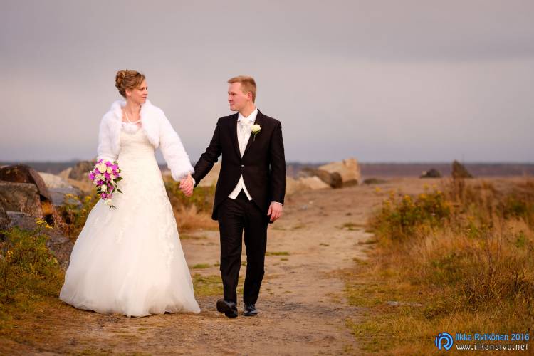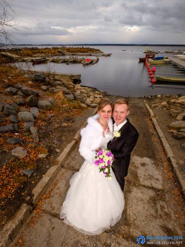 Hääpäivänä aurinkoa ei juurikaan näkynyt, joten se antoi enemmän vapauksia kuvauspaikoille. Vihiluodon venesatama lienee suosittu hääkuvausmiljöö, sillä paikalle saapuessani meneillään oli toinen hääkuvaus. Lämmintä vaatetta oli nyt se verran enemmän päällä, että kuvaajalle ei tehnyt tiukkaa. Hääparilla saattoi olla sen sijaan hieman vilpoisampaa, mutta urheasti he jaksoivat poseerata saimme kasaan mukavan setin erilaisia poseerauksia. Kesken kuvauksen vähän vettäkin vihmoi, mutta kuuro meni nopeasti ohi.