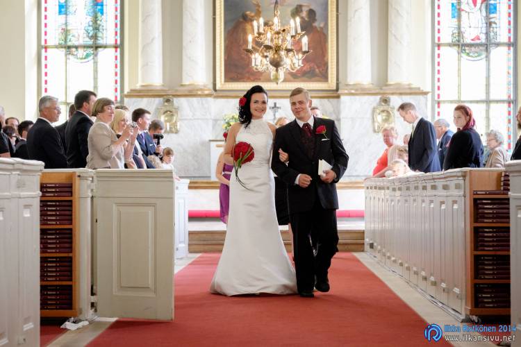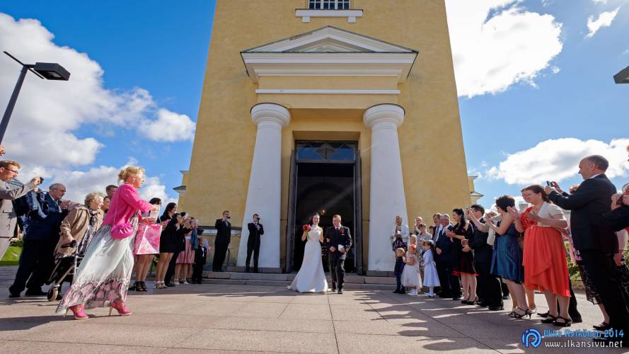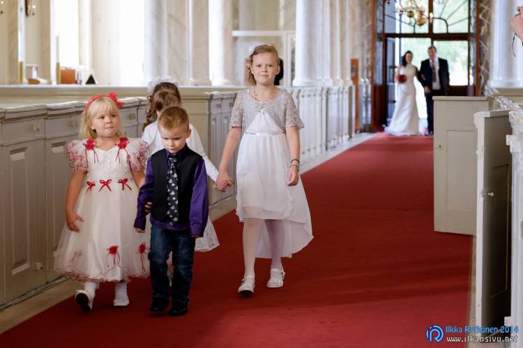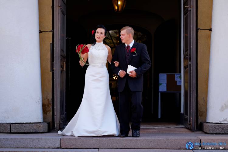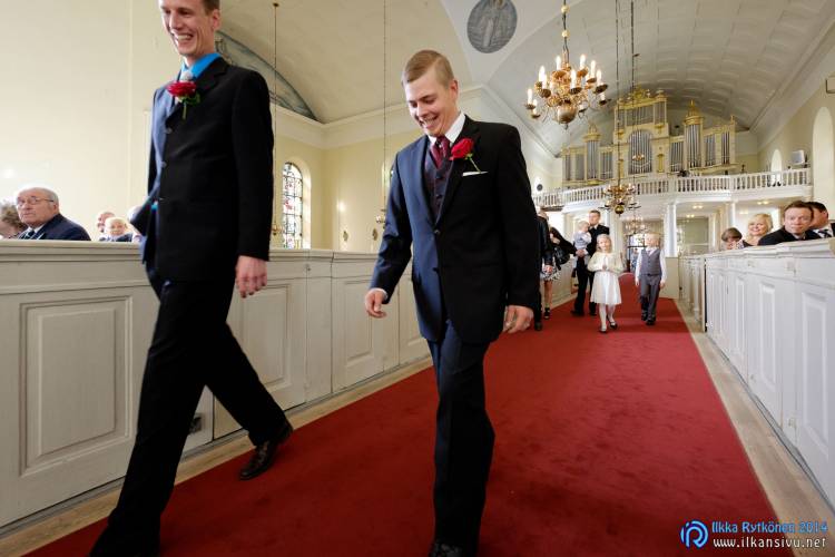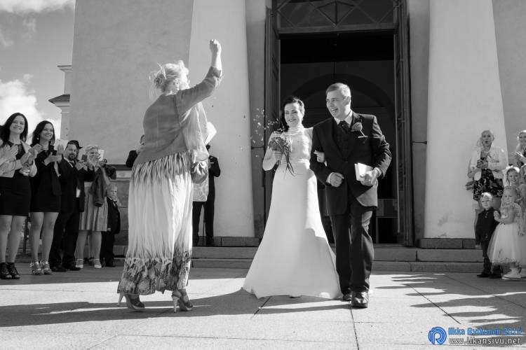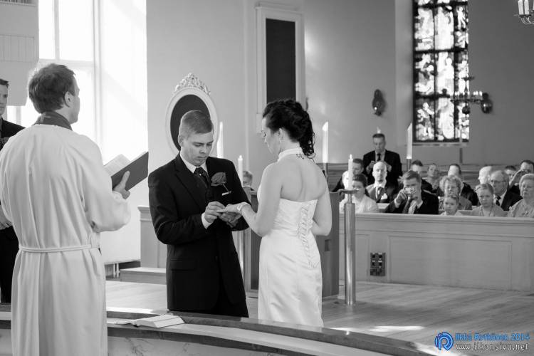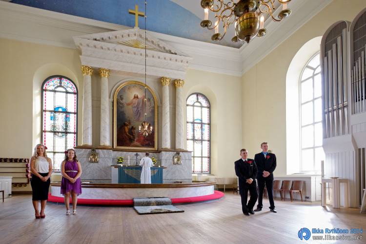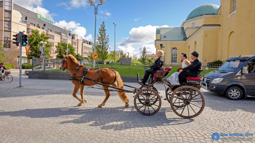 We had portrait photo session earlier in the week before the wedding ceremony. It started to rain just before shooting so we started photographing in a barn. Rain wasn’t any more so hard so we went to a wet barley field. Flashes needed to protect from the rain but camera and lenses were weather sealed so I could shoot pretty free. Horse was part of the photography.