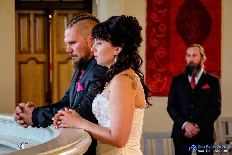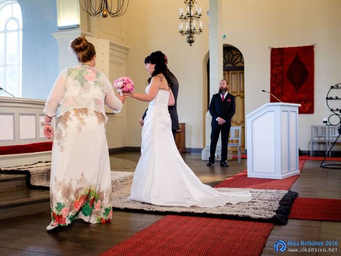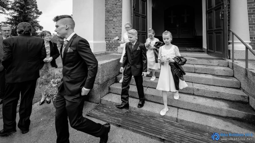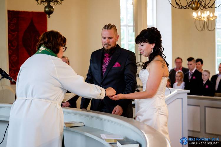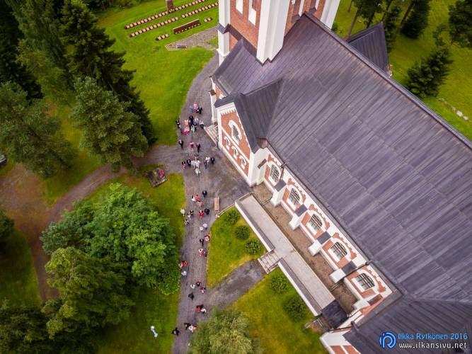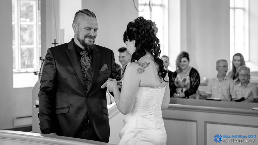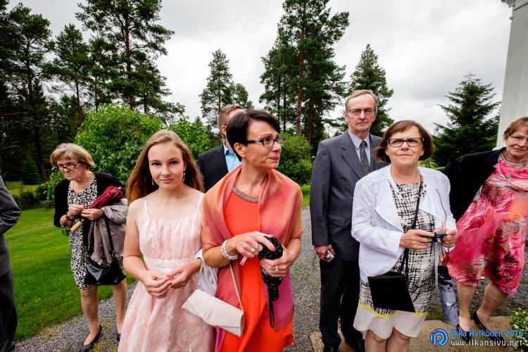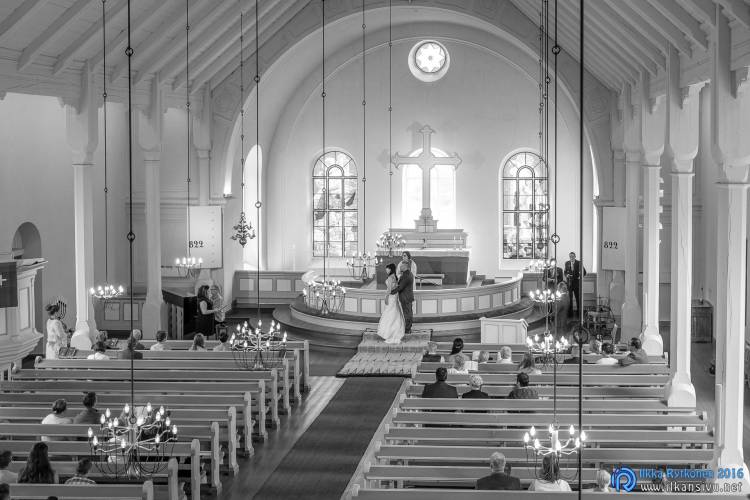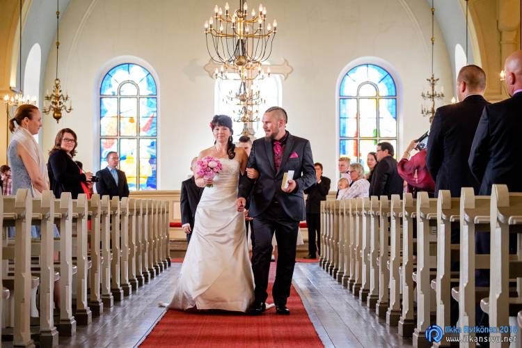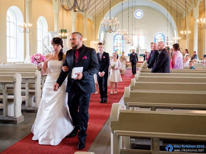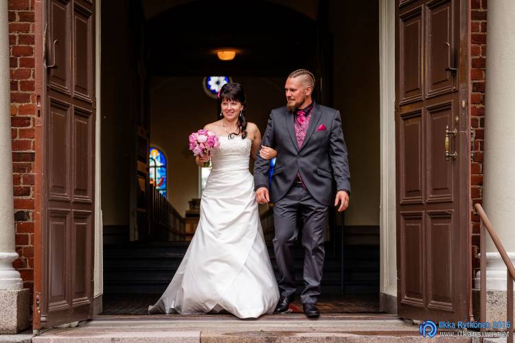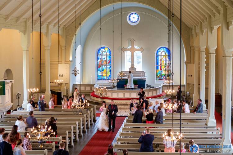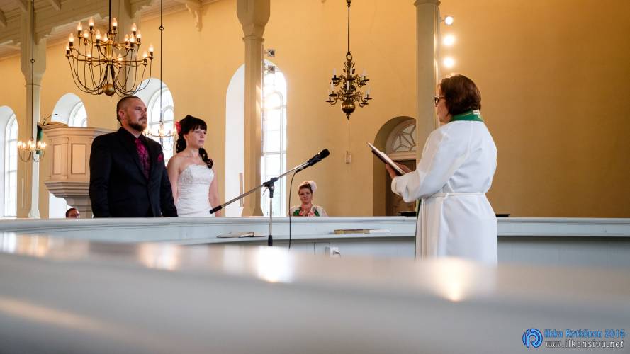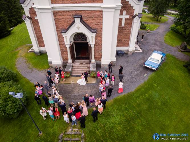 Wedding day in July so weather is to be expected nice and warm. But when Johanna and Jani were aimed to get married it wasn’t so warm and it was rainy also. Luckily rain showers were gone just before wedding ceremony which was held in Lumijoki church. Church is very big and beautiful place. It was my first attempt to try a drone as part of wedding photography.